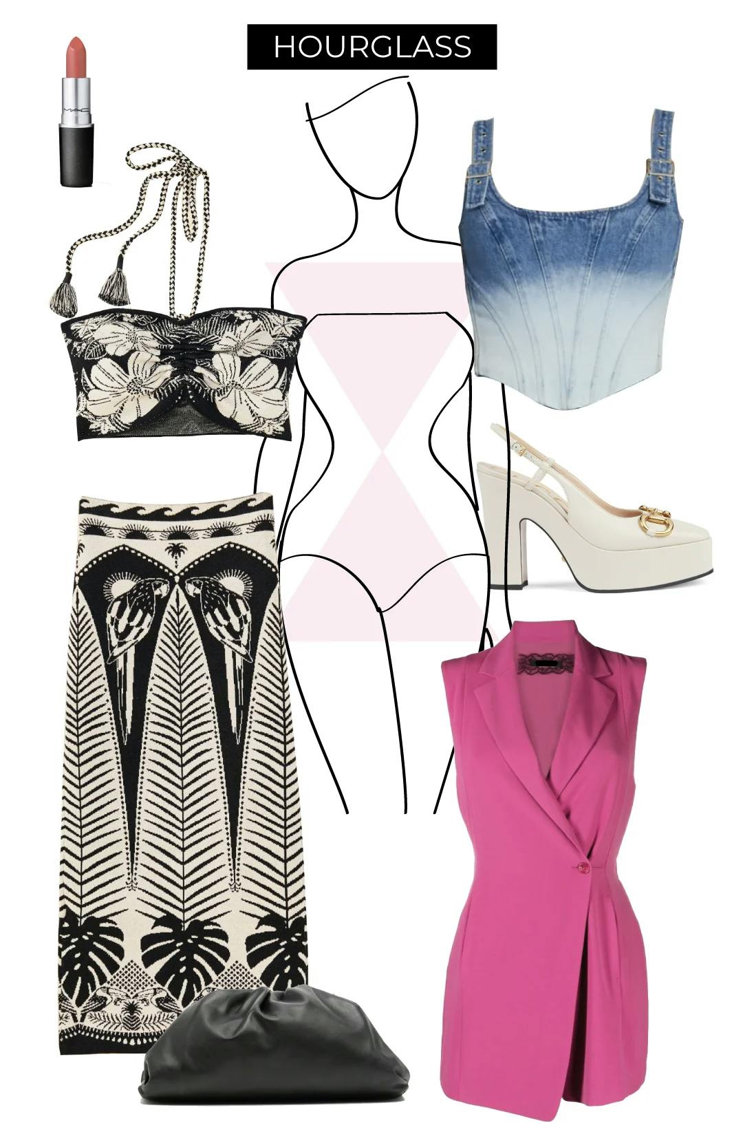 A typical hourglass silhouette has a slim waist, feminine curves and carries weight quite evenly. For this reason, you can choose pieces that highlight your middle, V-necks and figure-hugging fabrics.