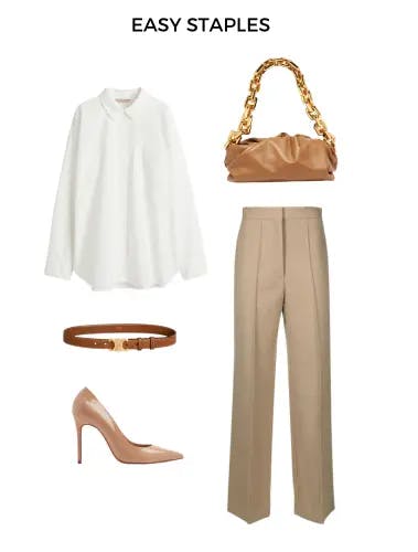 Styling tip: Style your capsule items differently each time to keep them looking fresh. For example, a white shirt can be half tucked in with cigarette pants, fully tucked in for a pencil skirt or worn loose with jeans.