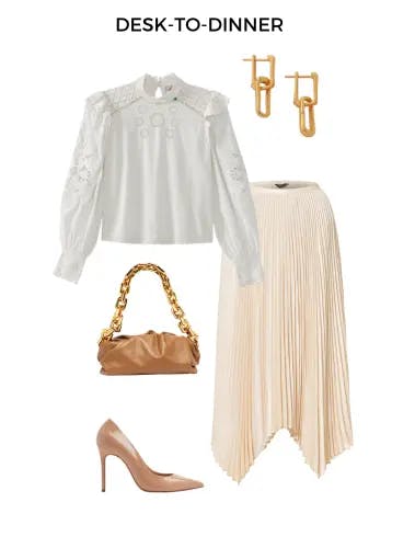 - Cream pleated skirt