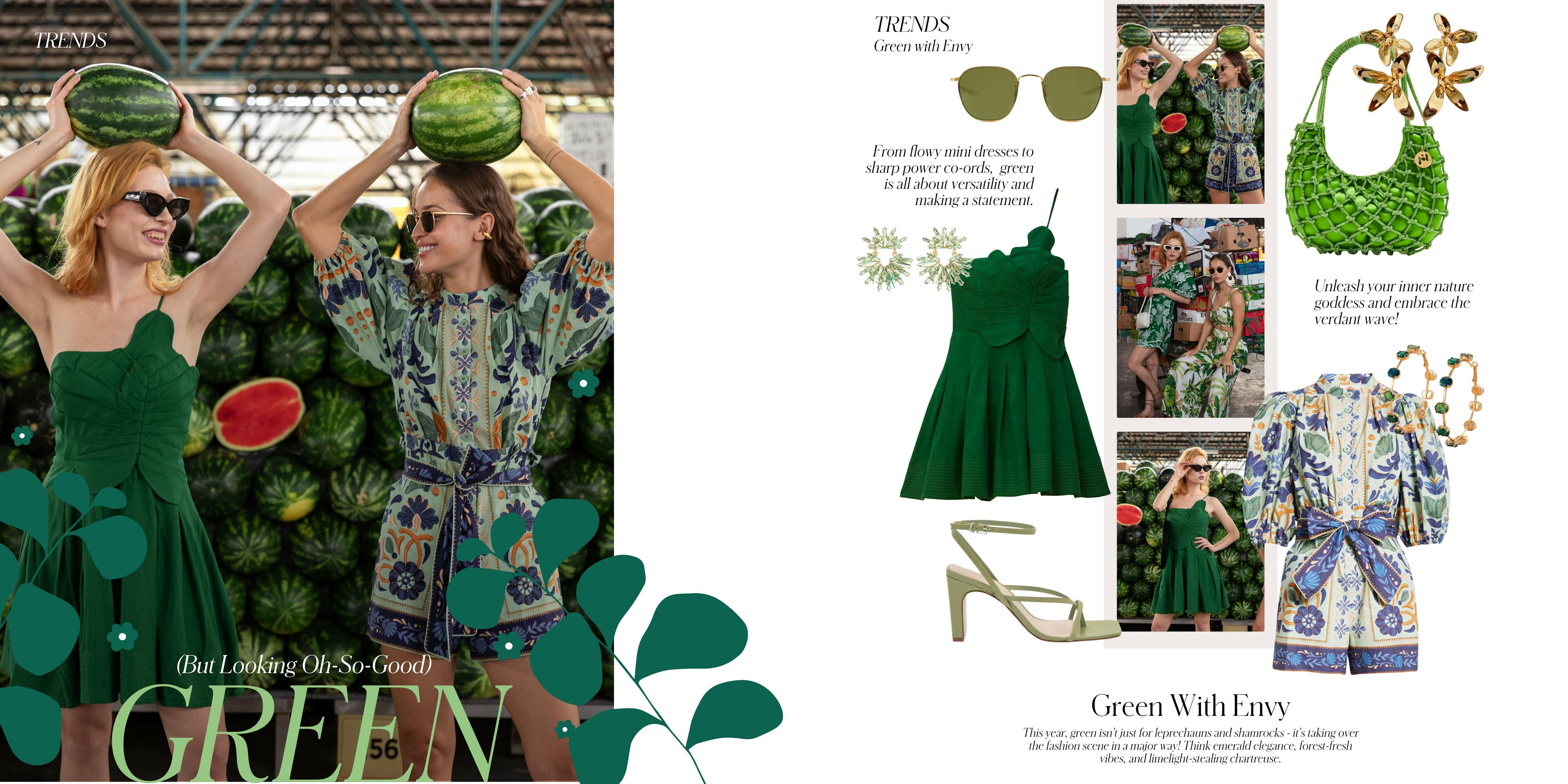 This year, green isn't just for leprechauns and shamrocks—it's taking over the fashion scene in a major way! Think emerald elegance, forest-fresh vibes, and limelight-stealing chartreuse. Green took center stage on the runways this season, appearing 14.5% more than in the previous spring/summer collections. Green is now the color du jour, captivating designers and fashionistas alike with its vibrant allure. From lush botanical prints to sleek monochrome ensembles, green is proving to be the ultimate statement hue for the modern style maven. Get ready to embrace the verdant renaissance and infuse your wardrobe with a touch of nature's splendor!