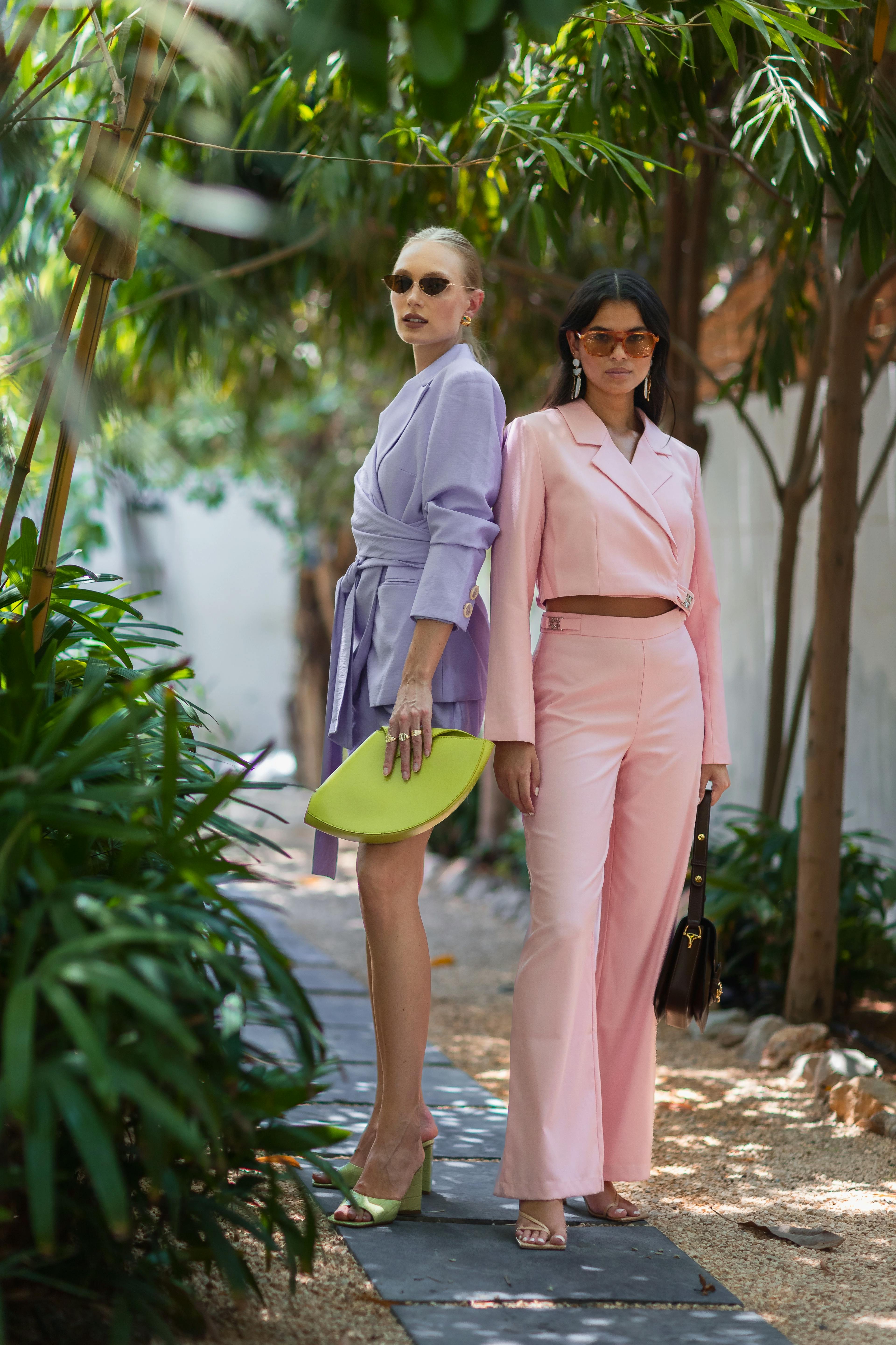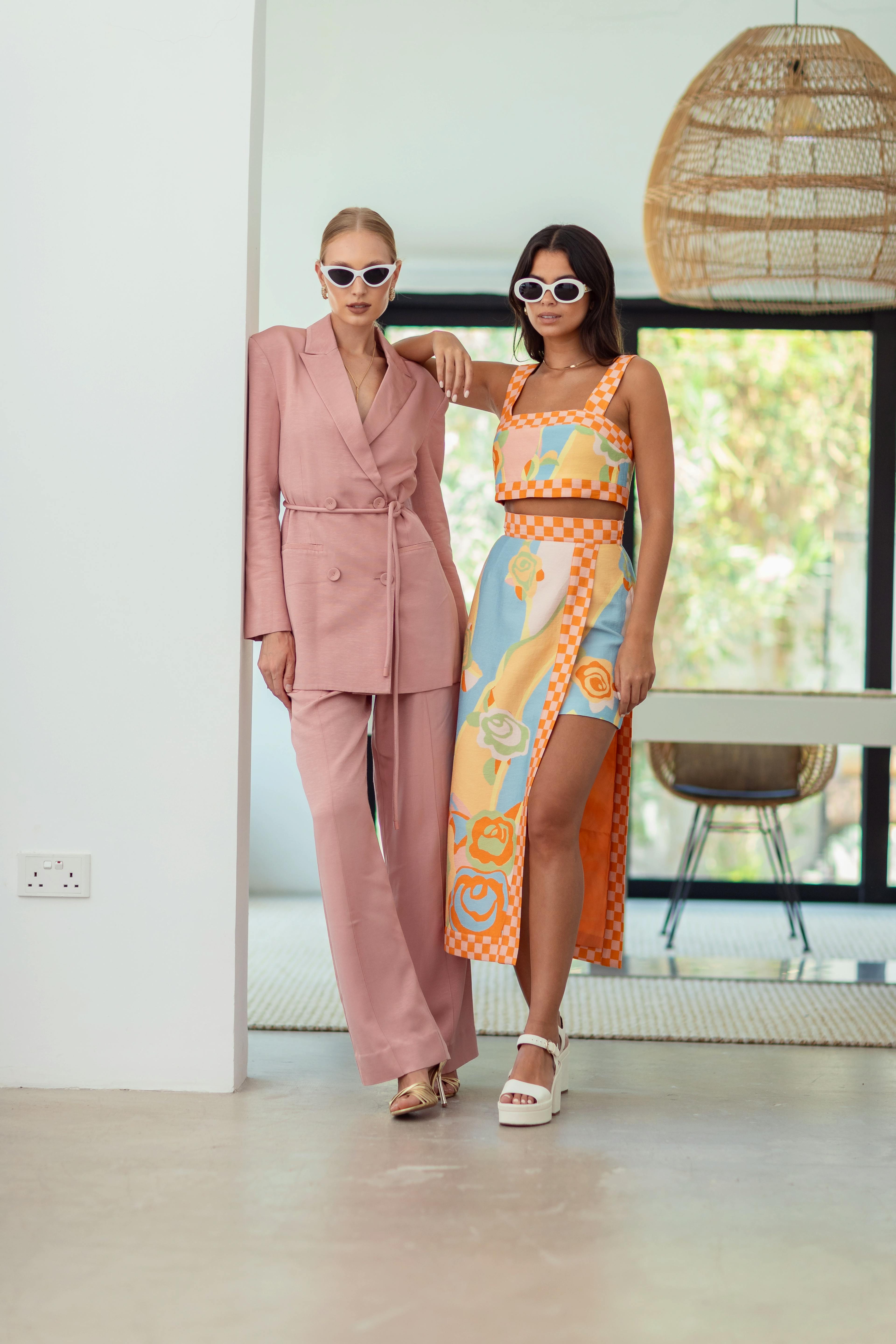 A pants suit is the chic way to say ‘I mean business’ at the office, whilst simultaneously lending itself nicely to afterwork plans, plus, the cost per wear with mixing and matching is a no-brainer. By dipping into a color palette of dusty pink and warm peaches, you’ll softly hint at summer style rather than scream it. For an evening take on tailoring, embrace graphic prints and mixed pastels for a playful but sophisticated take on partywear.