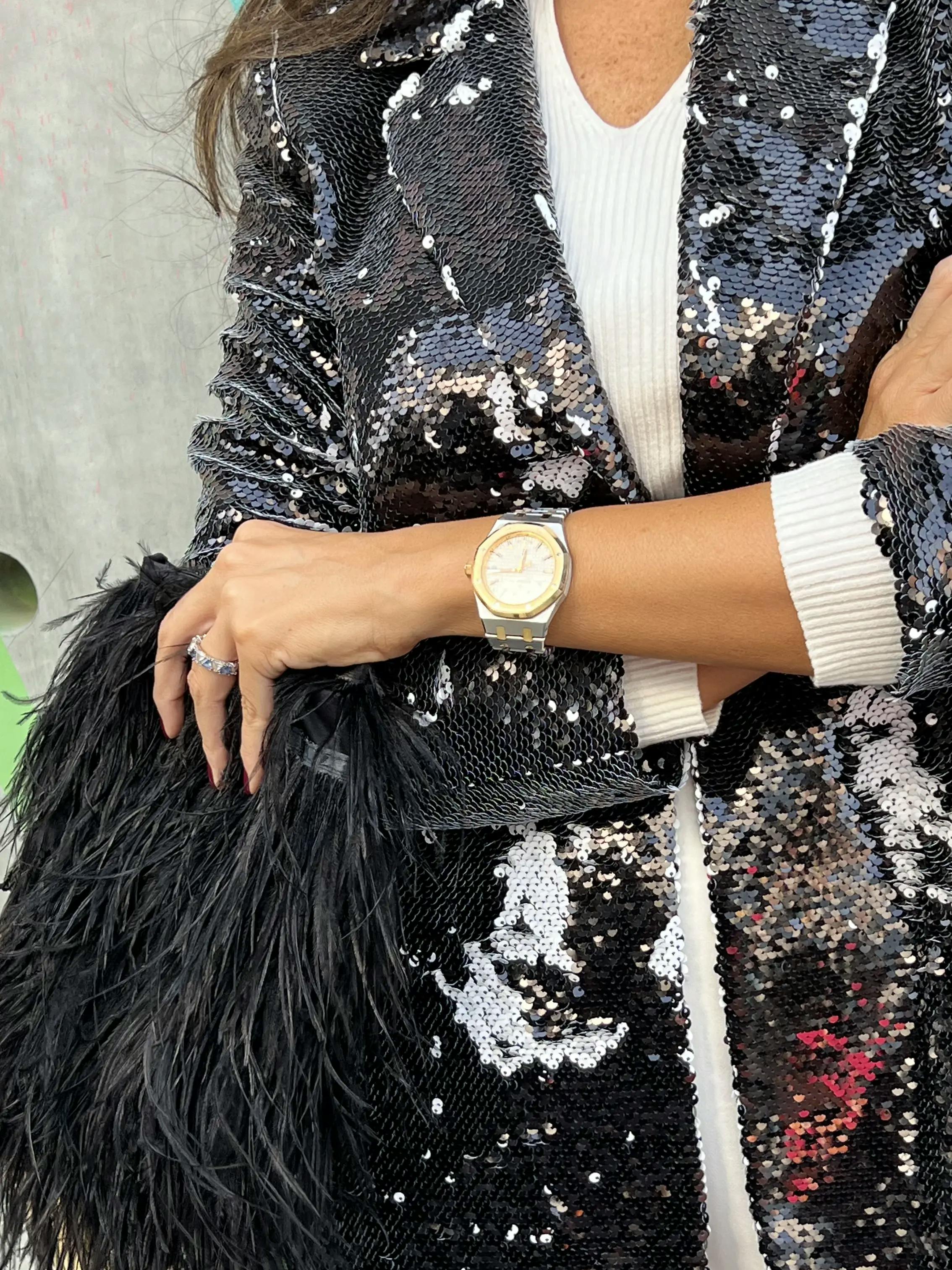 If you want to inject some glamor into your outfit STAT, but sequin maxis feel too formal, let a blazer be your go-to. “I love how a sequin blazer takes this all-white look into disco territory,” says Malak. “Often during party season, the shops are full of shining mini skirts which aren’t right for so many of my clients, so I always suggest adding a finishing layer of sequins instead.”