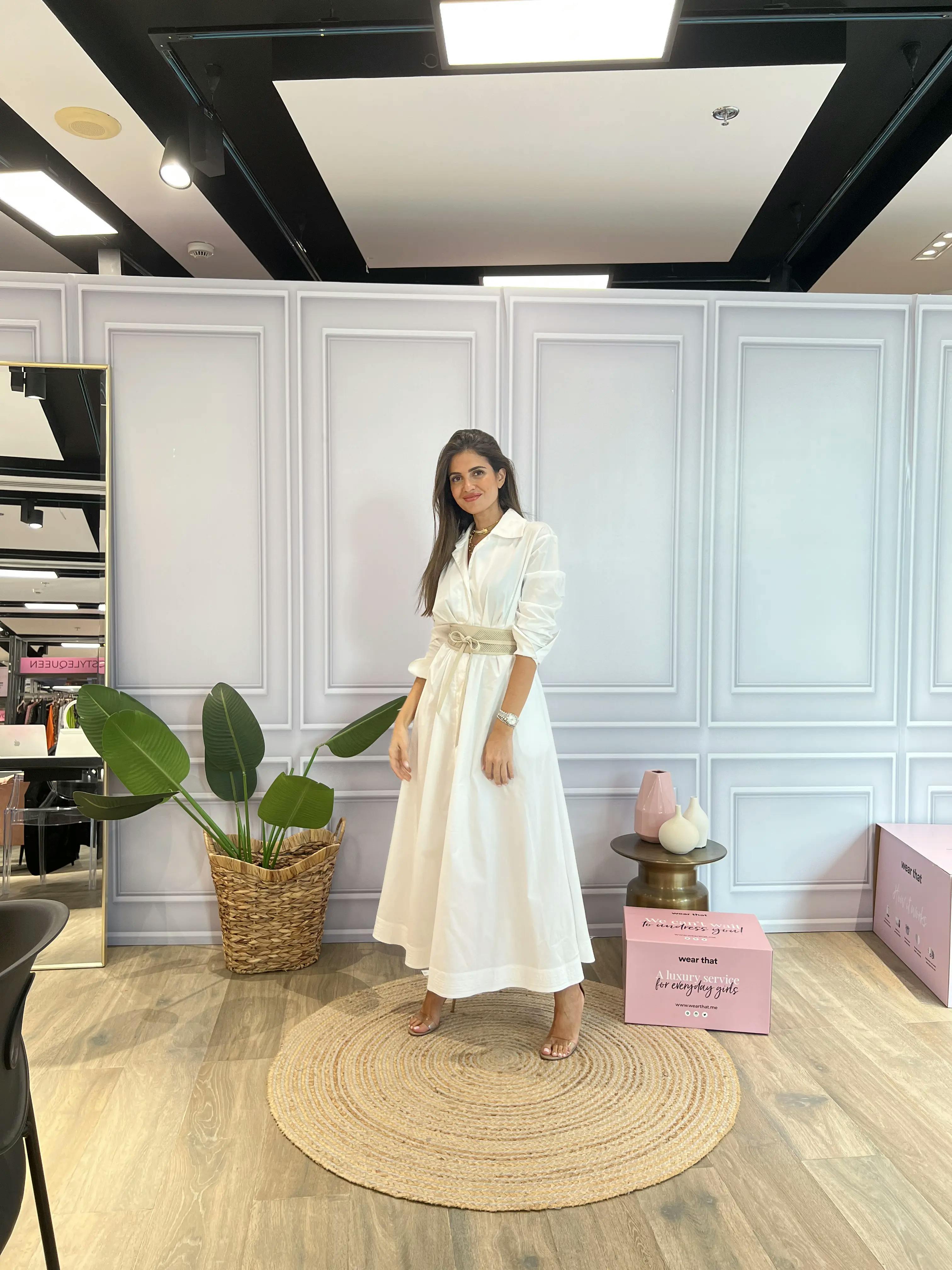 Have you ever found the perfect dress for you, only to discover it has midriff cut-outs and is actually way too revealing for your style? Malak to the rescue. As someone who likes to switch between modest and non-modest styling, Malak shows there’s two ways to wear such a dress. By taking a wide belt, simple layer over the cut-outs and you’ll be none the wiser. You could also use a silk scarf for the same effect.