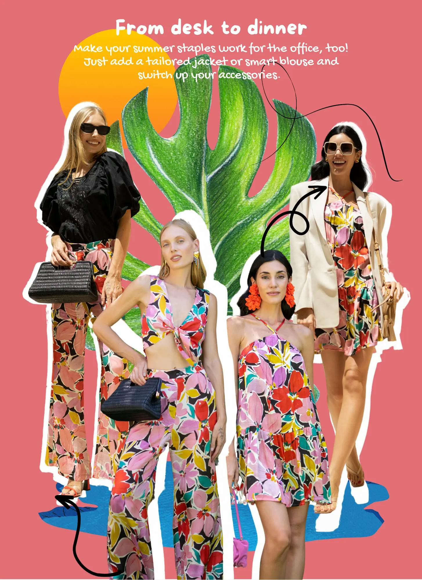 Your summer staples don’t have to be confined to the suitcase. Make each piece work for everyday with subtle styling tweaks that take you from day to night or desk to dinner.