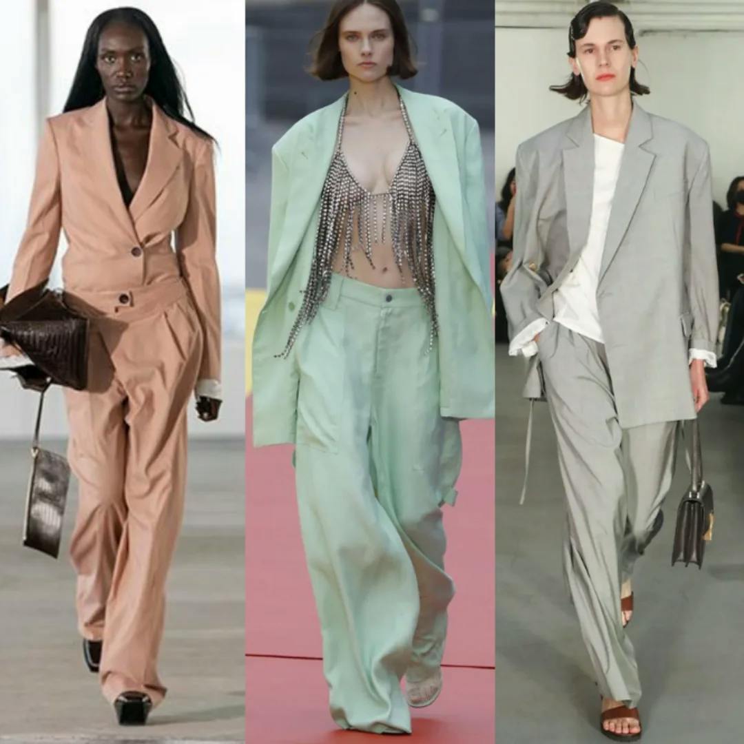 Smart blazers and pants get a fluid, relaxed spin for 2023 with shades of mint and light gray really taking the spotlight over last season’s camel and black.